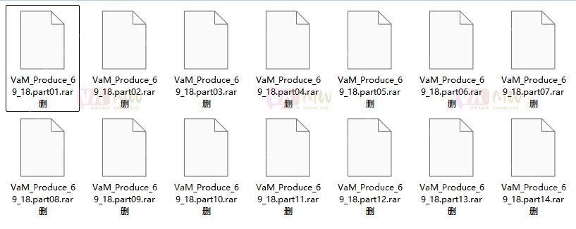 Make sure the download is complete. There are 14 compressed packages in total. After downloading all to the computer, modify the suffix name. Delete the deleted words in the “.rar delete” at the end of the suffix name, and restore the suffix name of these 14 compressed packages to “.rar”.